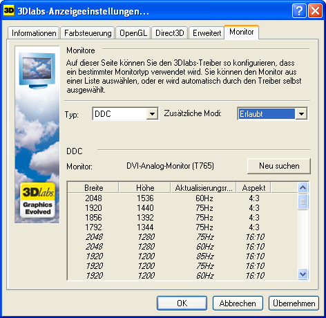 Werfen wir einen Blick auf die Treiber der VPs. Andere Firmen nennen ein Softwarepaket mit Treibern für alle Karten "Unified Driver", bei 3DLabs heißt das "Acuity Driver". Dieser ist für alle Karten der VP-Serie zu verwenden.