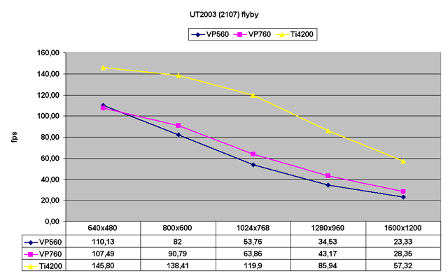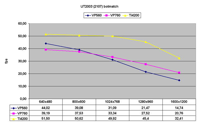 Hier erkennt man die nahe Verwandtschaft beider VPUs anhand der homogen sinkenden frameraten ab 800x600.